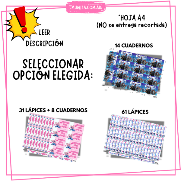 OPCIÓN 1: Etiquetas lápices + etiquetas cuadernos/carpetas